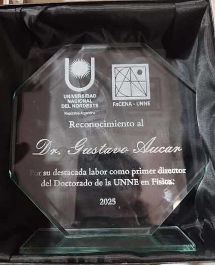 Entre los homenajeados, fue distinguido el Dr. Gustavo Aucar, reconocido por su rol como director pionero del Doctorado en Física y por su aporte fundamental a la formación de posgrado en la región.